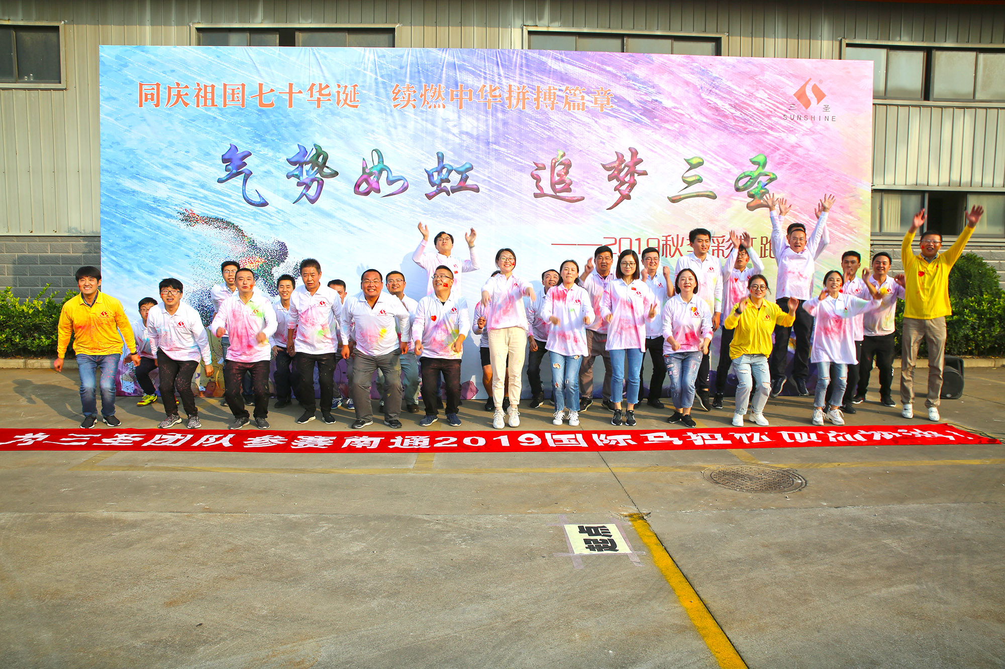 喜迎祖國七十華誕&預熱三圣團隊亮相南通國際馬拉松賽……三圣集團2019金秋“彩虹跑”絢麗呈現(xiàn)。