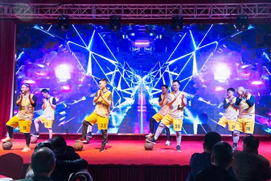 本次年會由公司內(nèi)部三個(gè)部門聯(lián)合承辦,所有節(jié)目均由承辦部門自編、自導(dǎo)、自演,充分展現(xiàn)了三圣人多才多藝的綜合素質(zhì)和自信向上的精神面貌。帥氣十足的佳佳和優(yōu)雅靚麗的雙雙,這一對主持搭檔帶給大家耳目一新的開場。隨后上演的一段兵乓球熒光舞,科技感十足的服裝、絢麗的七彩光,配上搞笑夸張的肢體動作,子公司艾伯納三圣的節(jié)目征服了在場觀眾。接下來的“灌籃高手”全明星秀,三圣籃球社團(tuán)的部分成員們,在葛教練的指揮下,展現(xiàn)了酷炫嫻熟的運(yùn)球技藝和團(tuán)結(jié)默契的球隊(duì)配合。