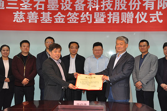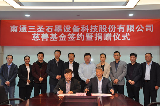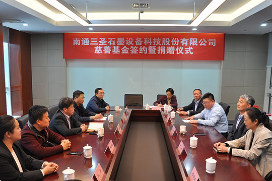 2020年4月21日,“南通三圣石墨設(shè)備科技股份有限公司慈善基金簽約暨捐贈儀式”在南通開發(fā)區(qū)能達大廈401會議室召開,該項基金將主要用于開發(fā)區(qū)安老扶幼、助學助醫(yī)、扶貧賑災、助殘濟困、公益環(huán)保等慈善公益事業(yè),推動該區(qū)慈善事業(yè)的健康發(fā)展。