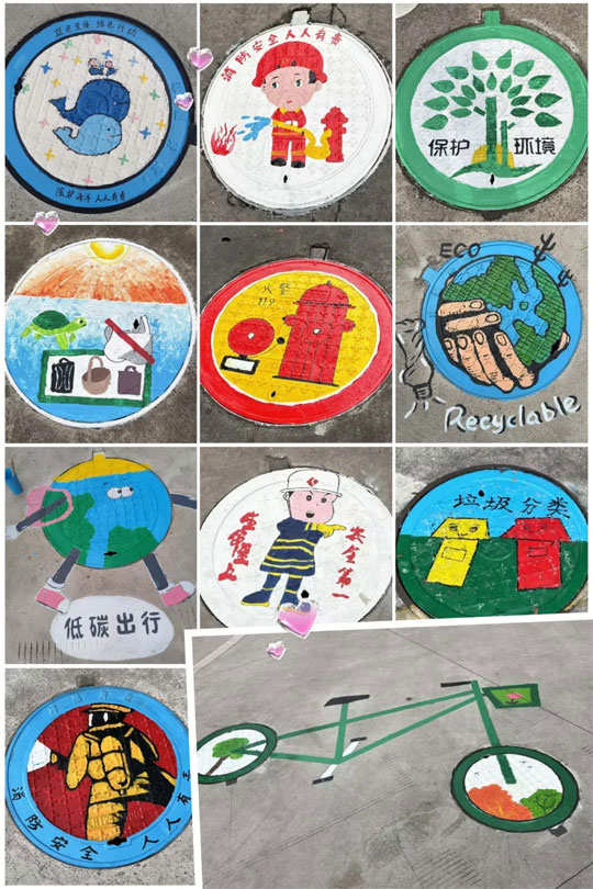 這一場別開生面的涂鴉大賽,為三圣園區(qū)添上一抹絢爛的色彩。隨處可見煥然一新的井蓋,是我們用畫筆和色彩繪制出的一道道亮麗風景線,也是對加強安全環(huán)保意識及節(jié)能減碳的美好期許!