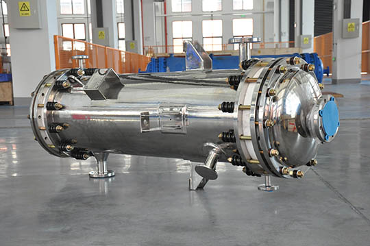 結構與特性: 該換熱器由殼體及管板等組成,其關鍵部件是管板,每一端的管板都由兩片加襯PFA的碳鋼組成,確保了設備的安全運行和耐腐蝕性; 該換熱器特別適用于運行強腐蝕性介質的冷凝器、冷卻器、加熱器及蒸發(fā)器; 所需空間小,容易操作; 操作安全性高,維修費用??;